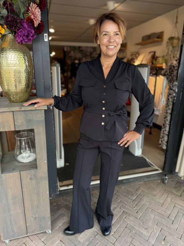 Triple Nine Blouse Cargo Pockets and Belt Black 5926
