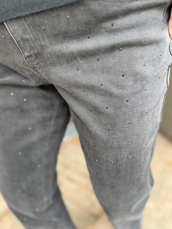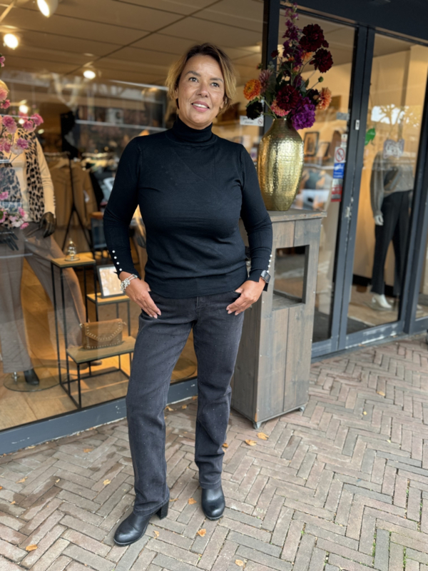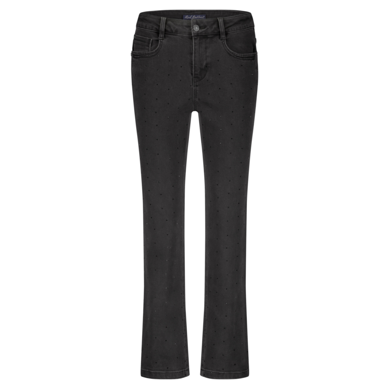 De Kim Black Strass is een straight leg jeans met een zwarte wassing en zwarte strass steentjes op de voorkant. De jeans is aansluitend op de heup en heeft rechte pijpen. De Kim Black Strass heeft een hoge taille en 5 zakken. Deze jeans is gemaakt van stretch denim voor ultiem comfort. Verkrijgbaar in lengtemaat 32 inch.