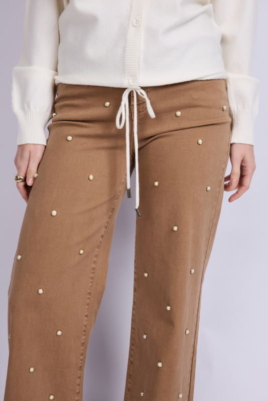 De Kaira trui is een moderne basic met een vrouwelijke touch. Het ontwerp heeft een diepe V-hals en knoopsluiting aan de voorzijde, afgewerkt met een strikkoord in de zoom voor een subtiele, aanpasbare pasvorm. De zachte knit en rechte mouwen zorgen voor een comfortabele, elegante look. Een veelzijdig item dat zowel open als gesloten gedragen kan worden, ideaal voor een casual chic outfit.