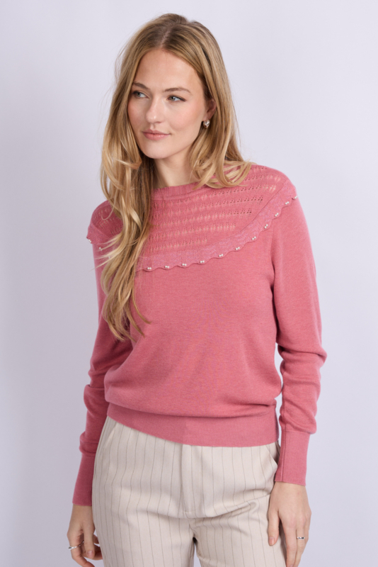 De Kamaria trui is een elegante knit met verfijnde details. De subtiele opengewerkte boord langs de halslijn en schouders geeft het ontwerp een vrouwelijke, romantische uitstraling. Dankzij de zachte stof en rechte pasvorm voelt de trui comfortabel aan en valt deze mooi om het lichaam. Een tijdloos item dat moeiteloos gecombineerd wordt met zowel denim als een nette pantalon voor een stijlvolle everyday look.