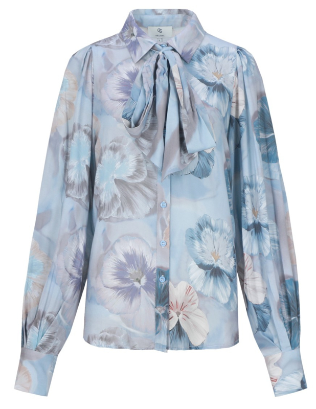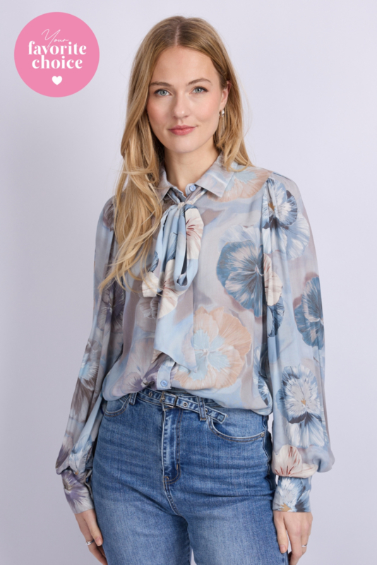 De Lace blouse straalt vrouwelijkheid en elegantie uit. De luchtige stof met groot bloemendessin in zachte tinten geeft het ontwerp een romantische uitstraling. De striksluiting bij de hals en de licht geplooide mouwen zorgen voor een speelse, verfijnde touch. Een stijlvolle blouse die perfect is voor zowel een feestelijke gelegenheid als een chique everyday look.