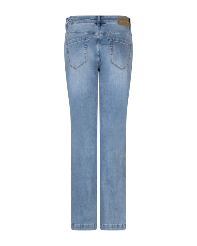 De Bibette & Buttons Denim is een flare jeans met een knoopdetail bij de zakken. De jeans heeft een hoge taille, een blauwe wassing en steekzakken. De Bibette & Buttons Denim heeft een aangesloten pasvorm op de bovenbeen en heup en is uitlopend vanuit de knie in de perfecte flare. De jeans is gemaakt van stretch denim voor ultiem comfort.
