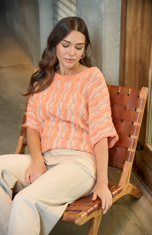 G-Maxx Gwenore Knitting Top Warm Coral/Offwhite
