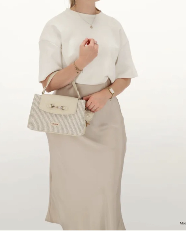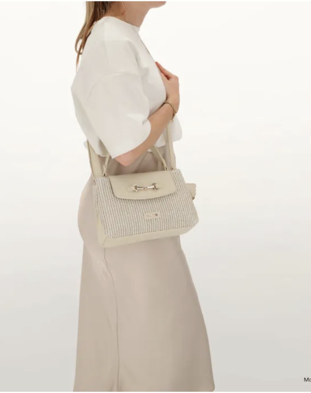 De Charm London Santorini Handtas is een elegante handtas met een zomerse uitstraling en verfijnde details. De tas heeft een stijlvolle overslag klep die zorgt voor een nette en vrouwelijke look. Dankzij het enkele handvat draag je de tas comfortabel in de hand, perfect voor dagelijks gebruik of een speciale gelegenheid.