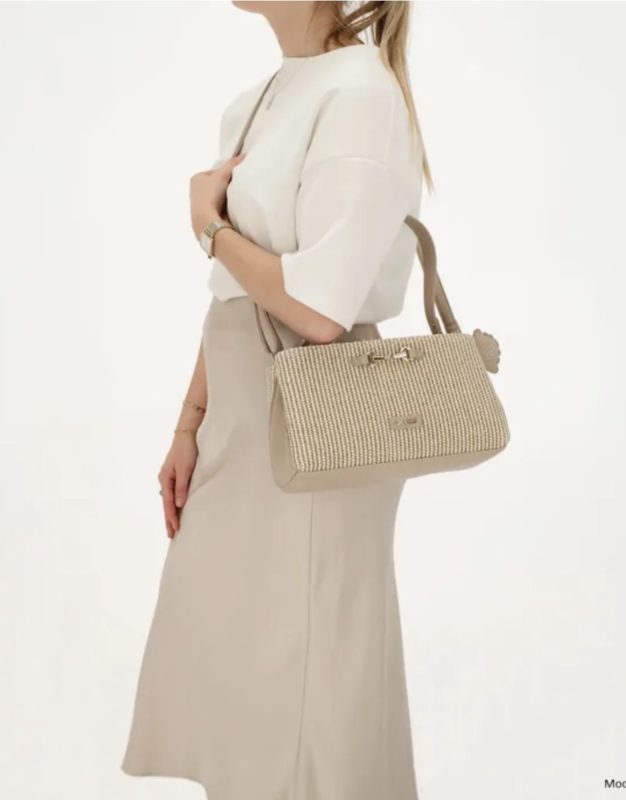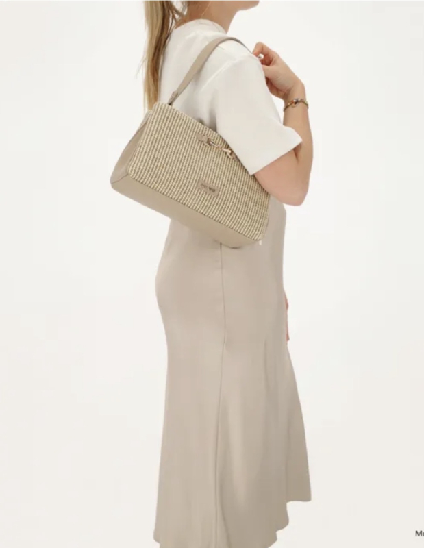 De Charm London Santorini Schoudertas is een stijlvolle tas met een zomerse riet look en een praktische indeling. De tas sluit met een rits zodat je je spullen veilig opbergt en alles netjes op zijn plek blijft.