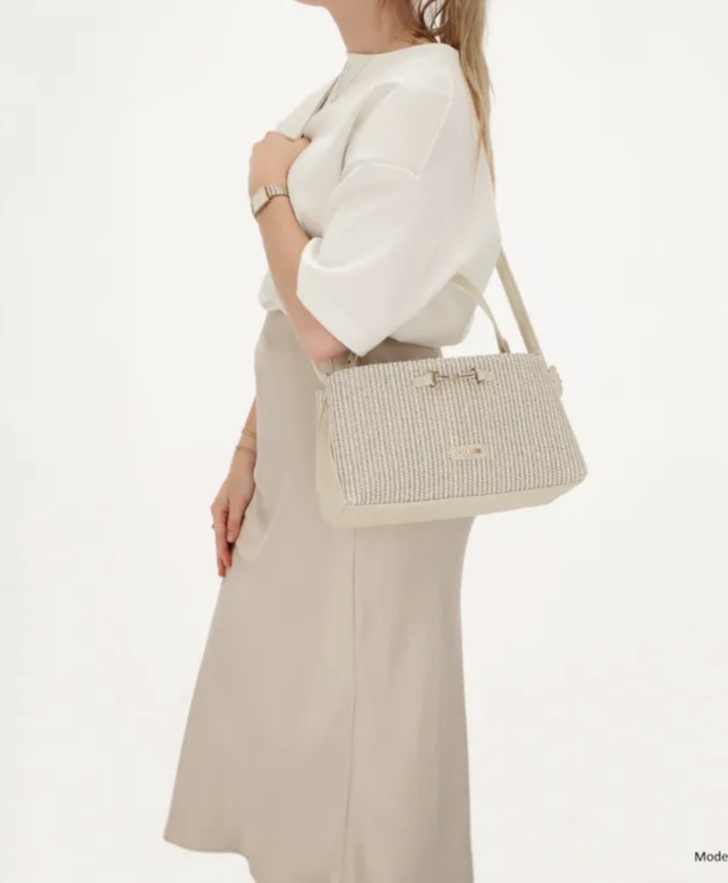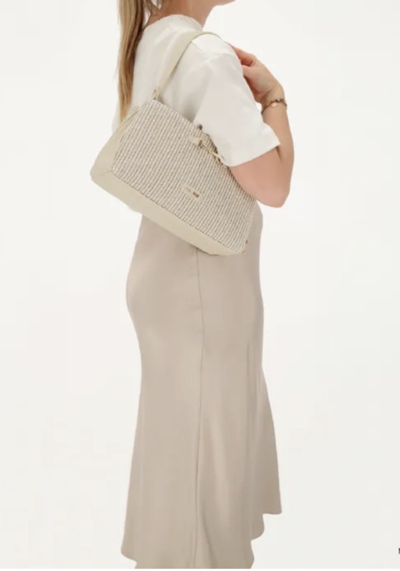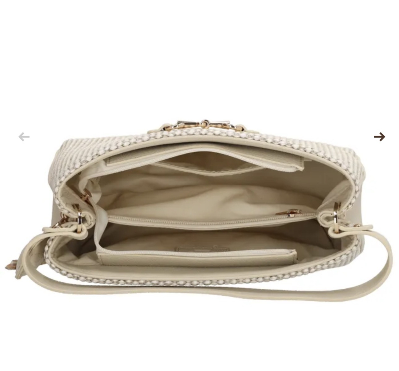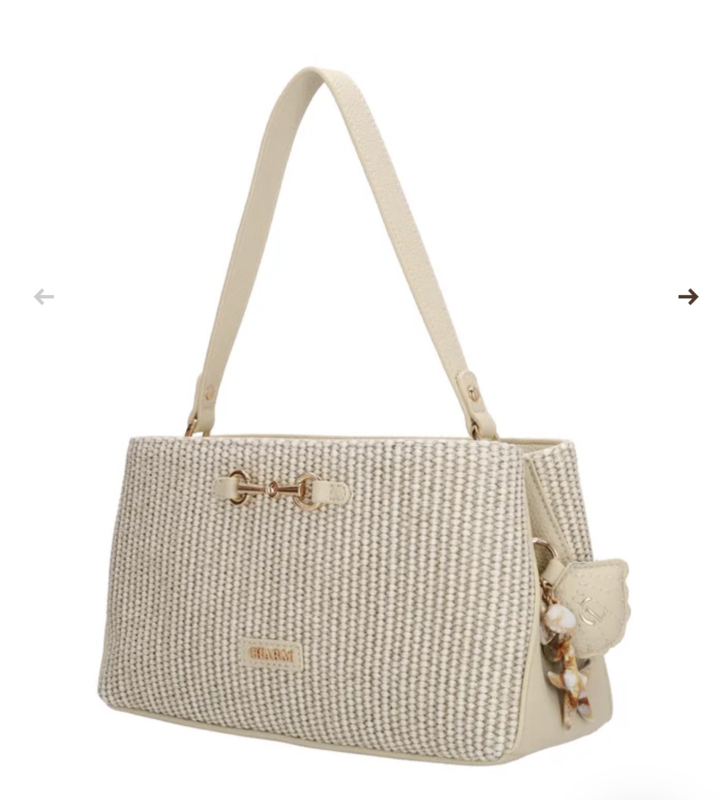 De Charm London Santorini Schoudertas is een stijlvolle tas met een zomerse riet look en een praktische indeling. De tas sluit met een rits zodat je je spullen veilig opbergt en alles netjes op zijn plek blijft.