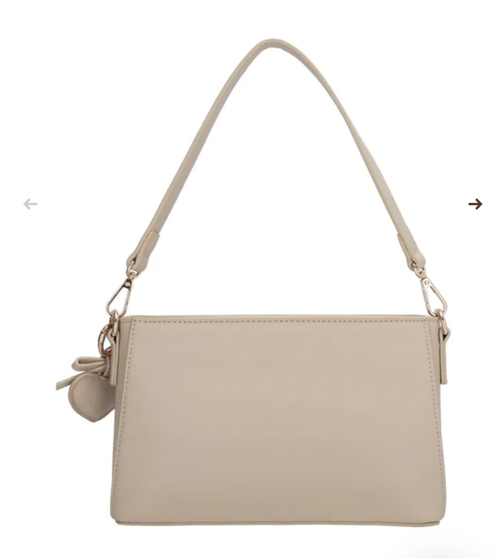 De tas wordt geleverd met twee afneembare schouderbanden: een korte band voor een hand- of schouderlook en een lange, verstelbare band voor comfortabel crossbody gebruik. De goudkleurige hardware en de speelse hanger geven de tas een elegante en vrouwelijke uitstraling.
