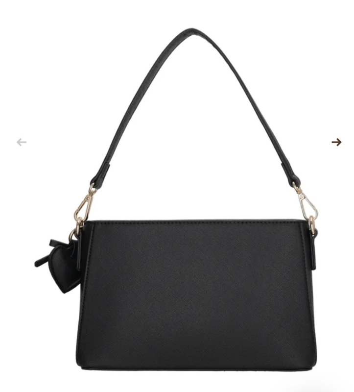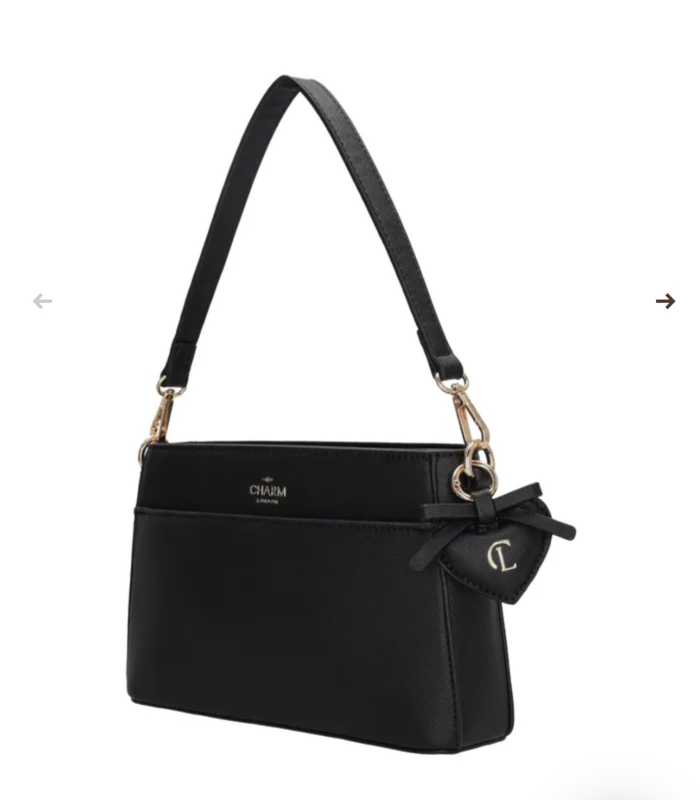 De tas wordt geleverd met twee afneembare schouderbanden: een korte band voor een hand- of schouderlook en een lange, verstelbare band voor comfortabel crossbody gebruik. De goudkleurige hardware en de speelse hanger geven de tas een elegante en vrouwelijke uitstraling.