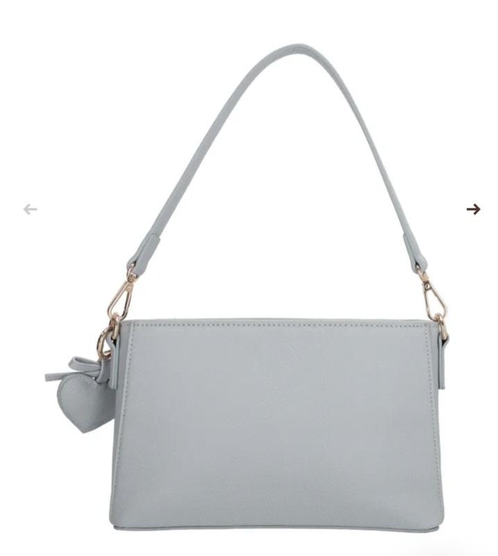 De tas wordt geleverd met twee afneembare schouderbanden: een korte band voor een hand- of schouderlook en een lange, verstelbare band voor comfortabel crossbody gebruik. De goudkleurige hardware en de speelse hanger geven de tas een elegante en vrouwelijke uitstraling.