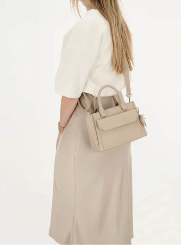 De Charm London Cambridge handtas is stijlvol, overzichtelijk en ideaal voor dagelijks gebruik. De tas heeft drie hoofdvakken: twee met een magneetsluiting en één met een ritssluiting. Binnenin vind je een speciaal telefoonvak en genoeg ruimte voor je essentials. Aan de voorkant zit een extra vak met klep en aan de achterkant een handig ritsvak. De tas wordt geleverd met een verstelbare en afneembare schouderband, zodat je haar ook comfortabel crossbody kunt dragen. Als leuke finishing touch is de tas voorzien van een hartvormige sleutelhanger.