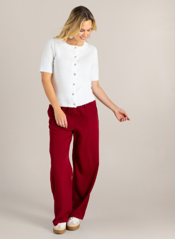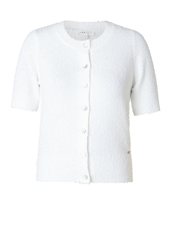 Glena is the sort of cardigan that immediately catches the eye with its soft, fluffy texture. The shaggy fabric feels light and comfortable. With short sleeves, a round neck and button fastening, it’s a playful layer for cooler moments.