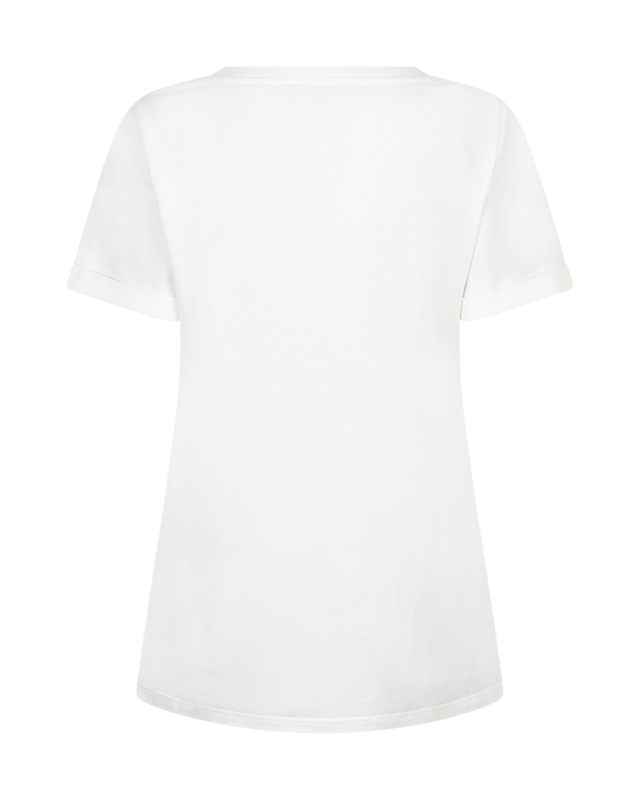 De Tee Temmy Multi Flower is een wit t-shirt met korte mouwen, een regular fit en een ronde hals. Het t-shirt heeft een print op de borst