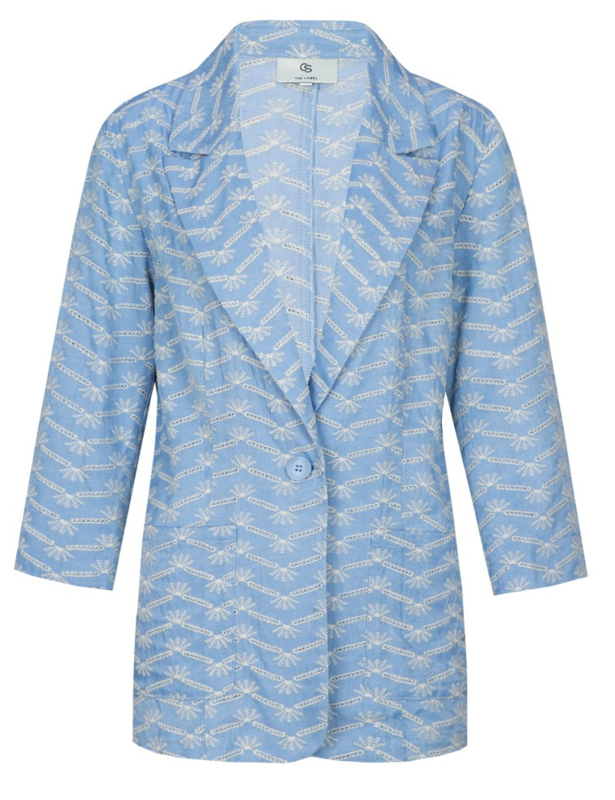 De Bizou blazer is een stijlvolle blazer met een speelse print die zorgt voor een frisse en eigentijdse uitstraling. Het model heeft een klassieke reverskraag, een knoopsluiting en een rechte, iets langere pasvorm, wat zorgt voor een elegant silhouet. De soepelvallende stof draagt comfortabel en geeft de blazer een verzorgde look. Perfect te combineren als statement item op een jeans en top of als co-ord met een bijpassende Phoenix broek voor een modieuze, stijlvolle look.